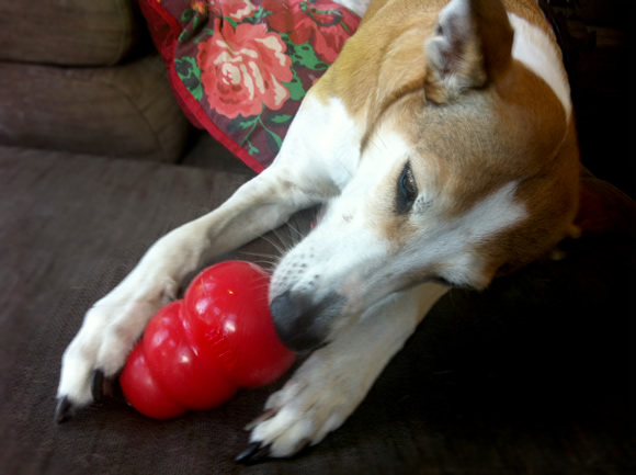 - een x-aantal kauwspeeltjes (lees hier alles over de Kong)